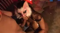 In a dimly lit room, the masked feline couple passionately engage in a kinky and erotic sex scene.The woman, sporting a seductive lingerie set that accentuates her ample tits and long, shapely legs, eagerly mounts her masked partner, riding him in a manner that perfectly encapsulates the meaning behind the title.With every thrust, her cunt glistens as the penetration intensifies, their bodies entwined in a harmonious dance of desire and lust.As their moans echo throughout the room, her fingers delicately toy with her clit, increasing her pleasure to its peak.Meanwhile, he cannot contain his excitement, savoring every inch of her soft, supple flesh while expertly providing her with the best blowjob experience possible.The feline man, with an unrelenting desire for oral satisfaction, demonstrates true prowess in the art of cocksucking.His lips are wet and slathered with saliva as he devotes himself to her pleasure.His tongue expertly caresses her sensitive labia, bringing forth a mixture of pain and pleasure that has the woman in ecstasy.He focuses his attention on her clit, rubbing it with precision until she is brought to a fervent climax, screaming in bliss as she releases wave after wave of passion upon her lover.As the scene progresses, they transition into doggystyle, with the masked man relentlessly pounding her from behind while her hands grip the bedsheets in an effort to contain her growing lust.He relentlessly thrusts his cock deep inside her cunt, the penetration causing her to writhe with every motion.The mans own pleasure is palpable as he imagines his cock coated in her essence, as he moves closer and closer to his own climax.As the masked couple continues their erotically charged encounter, it becomes apparent that this kinky duo does not shy away from sharing their desire with the world.The womans body glistens under the glow of the dimmed lights, her tits bouncing in harmony with each thrust and caress.Her own fingers continue to tease her clit as she moves closer and closer to a second climax.Finally, overcome by their insatiable urges, the kinky duo reaches its pinnacle â an explosive culmination of lust that leaves them panting and breathless in each others arms.The feline man erupts in a powerful cumshot, his sperm coating her ass as he releases his load.The woman, still trembling from the aftershocks of her pleasure, eagerly embraces her lover while relishing in the taste of their mutual desire.As they collapse into each others arms, both the masked feline couple and the voyeuristic audience can only marvel at the true depths of passion that have been unleashed by this Riding with a Masked Feline Kinky Couple Enjoys Oral and More experience.